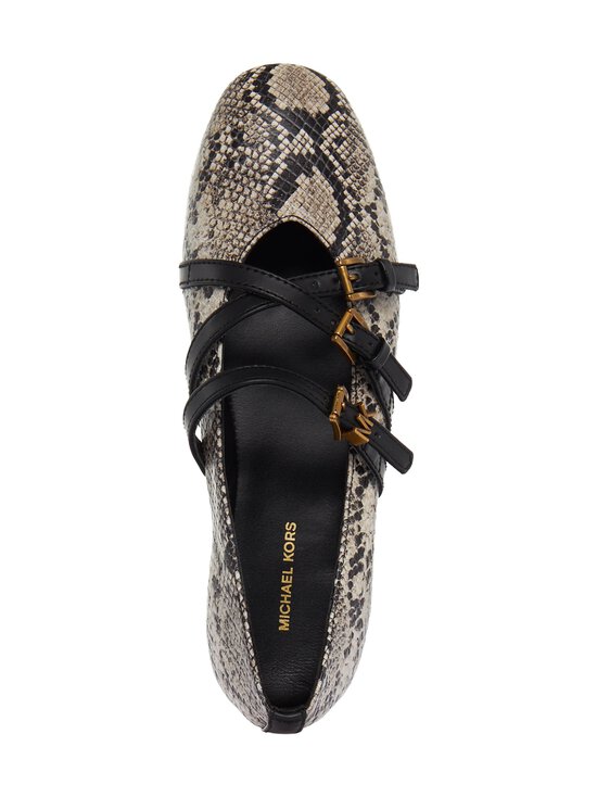 Michael Kors kaubamärgi baleriinad on valmistatud pehmest nahast, andes neile luksusliku ilme ja vastupidavuse. Kingade pealispind on kaetud maonaha imitatsiooniga. Kolm pandlaga reguleeritavat rihma viimistlevad elegantse terviku. Madalad nahkkingad Indy Flex on ideaalsed kasvõi terve päeva kandmiseks. Baleriinad sobivad hästi nii argiste kui ka pidulikemate riietustega.